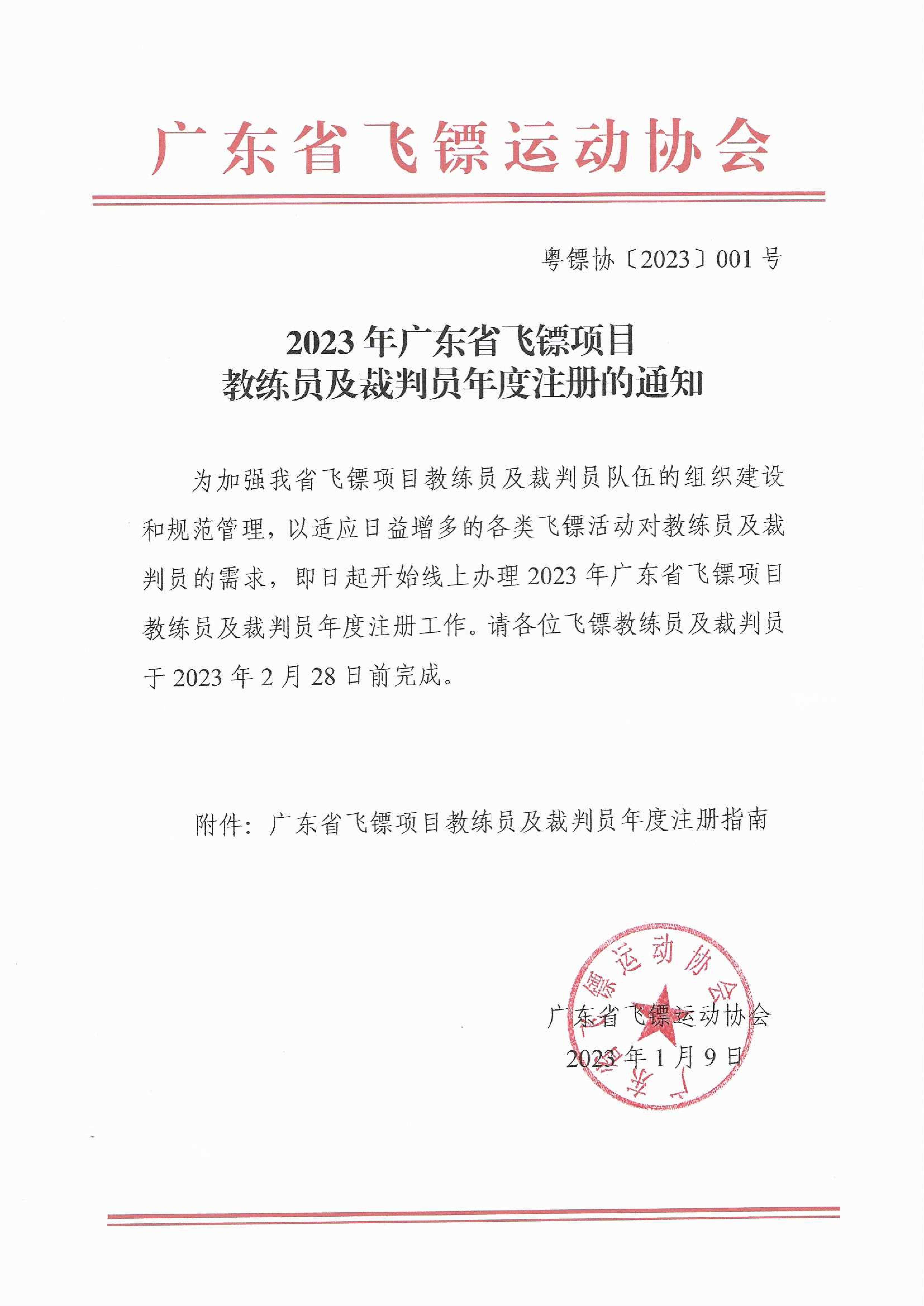 2023年广东省飞镖项目教练员及裁判员年度注册通知